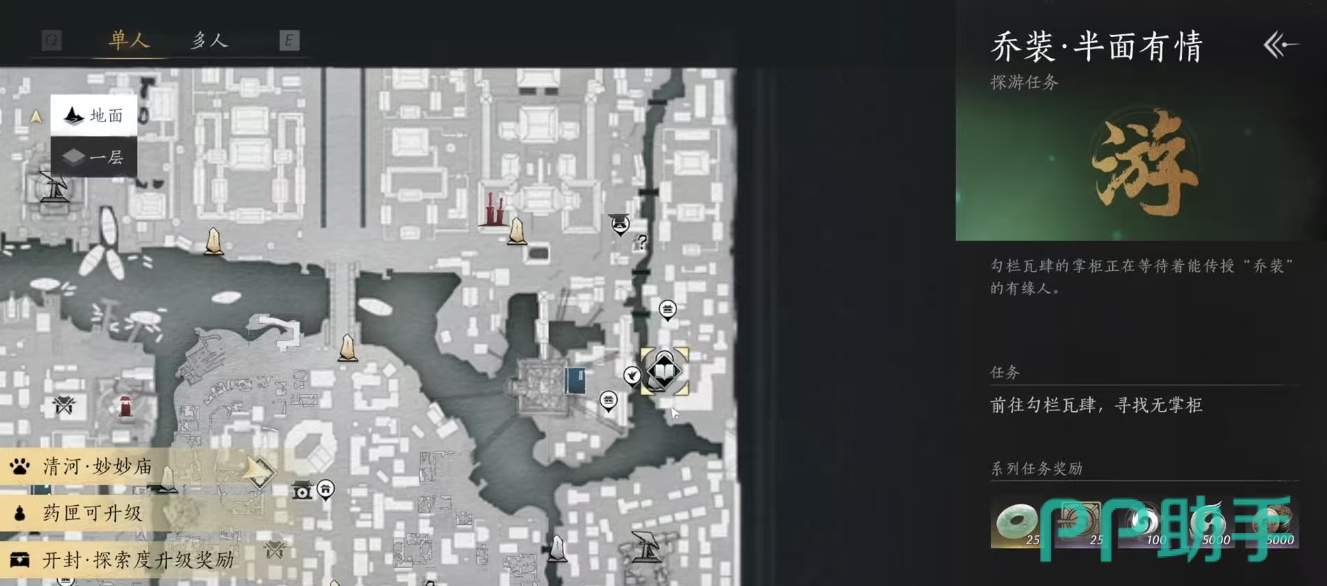 小编接下来就介绍一下操作的详细流程,这个任务本身是不难的,但是有着前置要求,需要玩家先去完成乔装扮面友情任务,解锁易容功能后,然后将画眉等级提升到二级。如果达不到要求,需要先将前置的任务做完,然后去提升画眉等级。画眉等级是需要在npc无艳那里接取两个乔装委托任务,将这两个任务完成之后就可以提升到二级了,所以大多数玩家都可以达到,不用担心前置的问题。