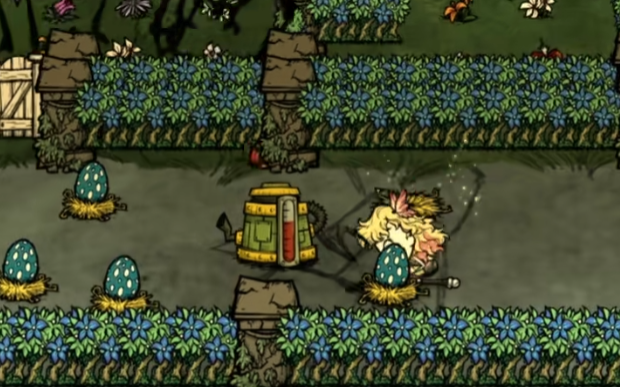 在黄昏或夜晚,当高脚鸟回到巢穴睡觉时,玩家可以悄悄靠近并偷取鸟蛋。但要注意,一旦被发现,高脚鸟会立即醒来并发起攻击。将鸟蛋放在营火旁边,保持适当的温度,大约10秒后蛋就会裂开并开始孵化。孵化过程中要注意避免过热或过冷。小高脚鸟需要喂食作物种子才能生存。玩家可以将种子放在小高脚鸟附近,它们会自动食用。小高脚鸟非常脆弱,容易受到其他生物的攻击。玩家需要时刻关注并保护它们。