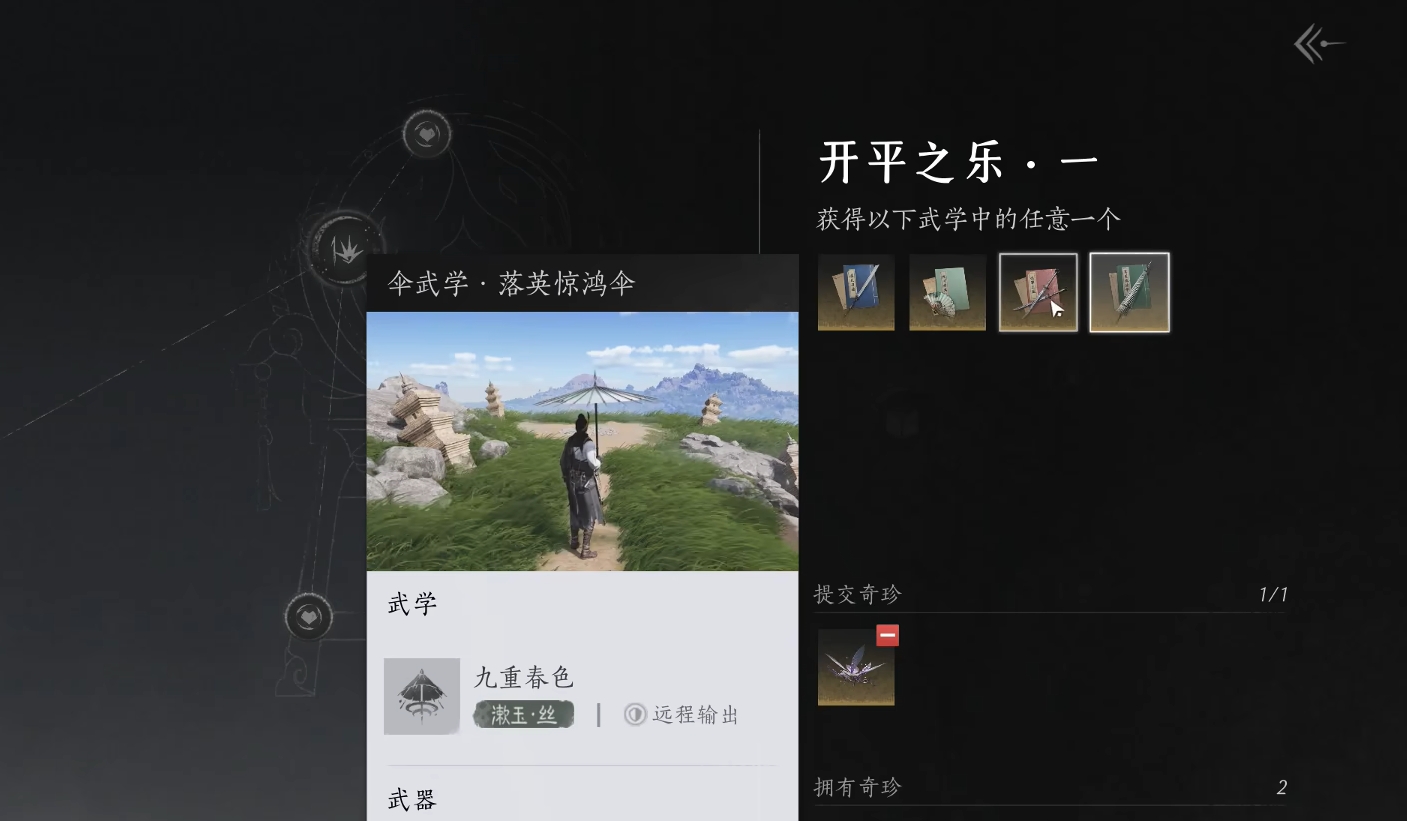自由活动期间人们可通过地图寻找能接取任务的NPC,并开启各类玩法,例如奇珍等,这些NPC都可直接进行追踪,玩家们也不必担心会迷路。其中奇珍玩法开启后能让玩家自选一套武功,是第一天必做的内容之一。