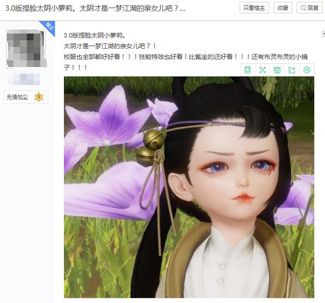 游戏玩家撇开对太阴极其觉得有趣以外,重生版的捏脸同样是受到游戏玩家关注的一些。重生版的捏脸特效干了极大改善,细腻的妆容配上崭新的肤质微调,因此版本更新发布后游戏玩家也纷纭开始了自身的捏脸展现,游戏玩家小区全都是重生版捏脸晒图的。