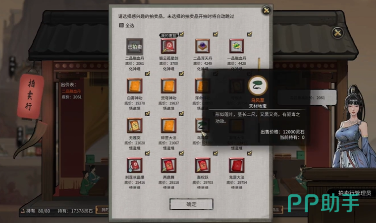 对于那些不愿在野外耗费大量时间的修仙者而言,拍卖行无疑是另一种快捷的选择。当玩家修为达到化神境,并穿越永恒冰原抵达暮仙州后,便可参与拍卖行的竞拍。乌风草因其稀有性,竞拍价格通常在1万2000灵石左右,这对玩家的经济状况提出了严峻考验。而拍卖行的魅力不仅在于通过资源换取稀缺物资,更在于修仙者之间的明争暗斗。玩家可以选择在拍卖结束后与对方商议,通过礼物或交易换取乌风草,也可以采取更为激进的方式,比如挑战对方,将其战败后直接夺取。