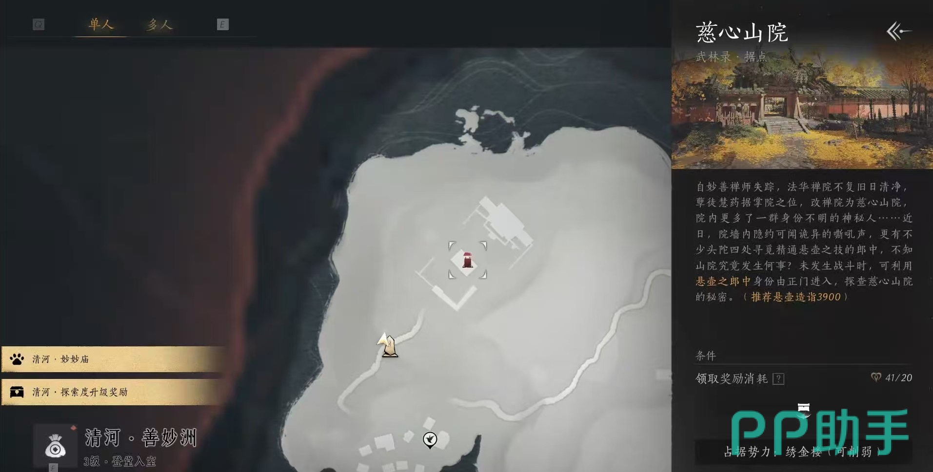 该心法获取的方式也比较简单,首先打开地图直接来到清河的慈心山院,来到慈心山院旁边的传送点后,直接进入到慈心山院里面,需要等待一段时间,敌人刷新之后,将该区域内的所有怪物全部击杀掉,清理完怪物后就可以获得心法春雷篇了。整个战斗并不算困难,而且在消灭所有怪物后,据点也会随之攻占,所以大家在发聚点的时候,顺便就能将这个心法拿到手中了。