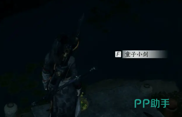 使用后会发现月神并不需要眼睛,这时我们要往右边走,到楼梯的下面,抵达这里后就能看到月神的生活区域,先拾取桌子上的童子小剑,然后在它的后面地上还能捡到一朵拜月花。