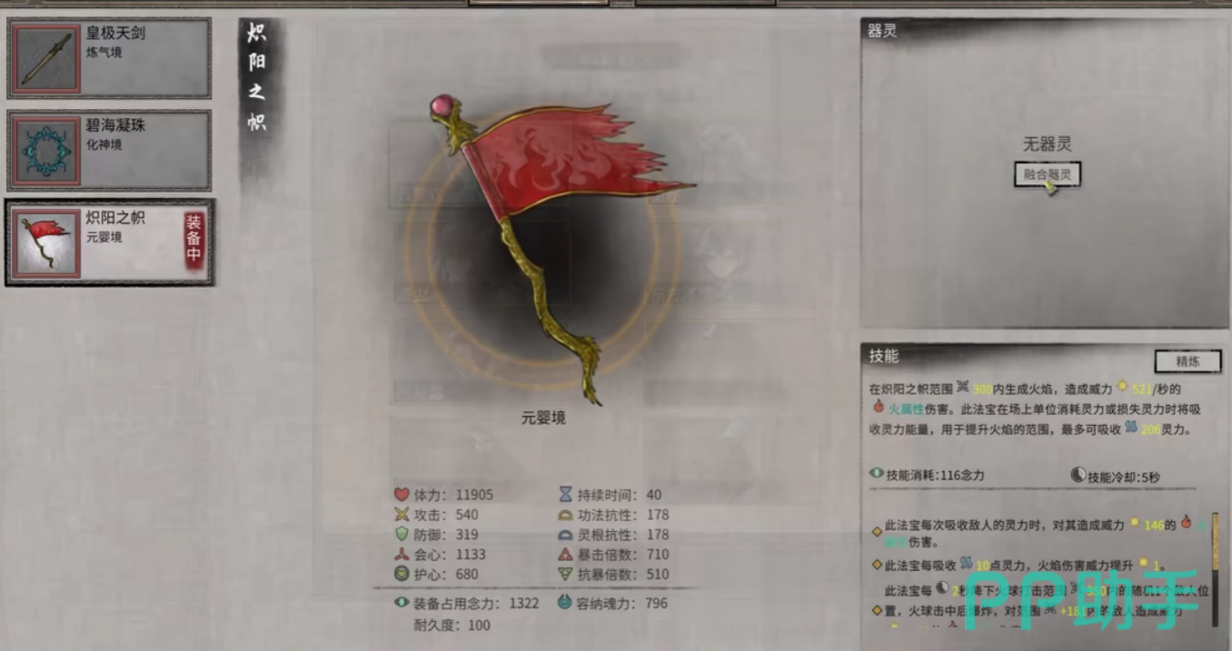 第二个获得器灵的方式是玩家率先获取某一个神器,例如玩家在游戏当中获取了炼气期的皇极天剑,由于初始获得的皇极天剑并不具备有器灵效果,玩家还必须挑战完成皇极天剑的器灵关卡,才能够将其灵魂丰富,所有的灵魂都进行丰富了之后,玩家即可解锁器灵玩法。