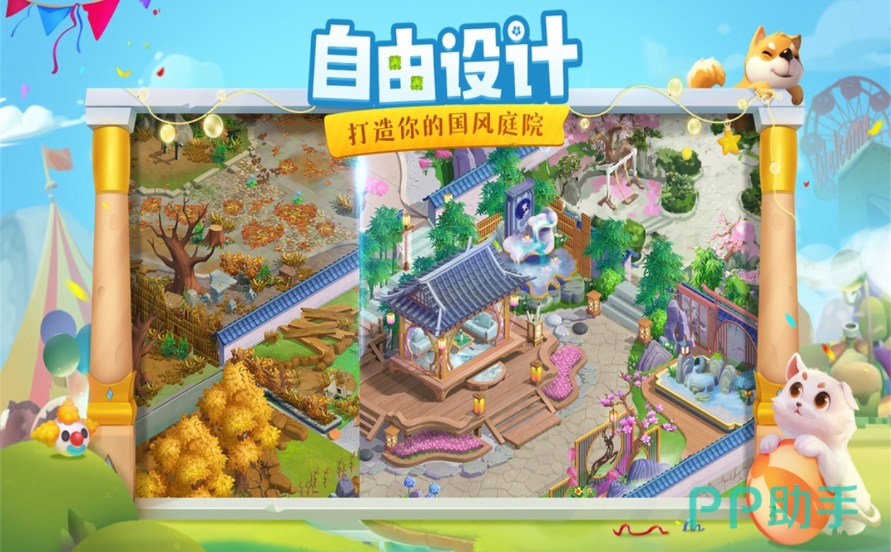 每一个花田小院的美丽都离不开玩家们的建设。其中有着多类型的庭院设计给玩家们参考。还有着消除关卡来打发在花田小院里面的时间。令人舒服的是游戏中的招揽客人以及服务客人玩法,毕竟没有客人参观的花田小院就是爱了它的原本意义。当然你的花田小院你做主,快来设计它吧。