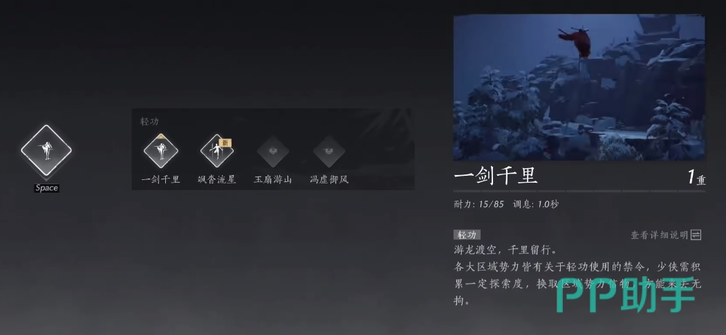 在燕云这个武侠的世界中,玩家能通过偶遇或者是各类奖励活动来获得各类武功技能,武功技能的助益效果不一,其中能够帮助玩家在游戏中达成快速位移效果的技能是【一剑千里】,燕云十六声一剑千里怎么玩,想要解锁这个技能且在游戏中使用这个技能的话,还需要几步操作才能实现,具体的操作是什么?