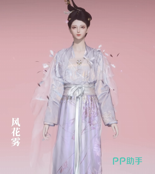 这款时装从名字方面来看就能大致猜出,是一种朦朦胧胧的浅色系,主要以淡紫色和白色为主,同时在主要的衣裳外面还轻轻覆盖了一层薄纱,和它的名字相近,在运动起来的情况下看着轻轻的,如同被微风吹起来一样,而一抹淡淡的紫色给人一种眼前一亮的感觉,如同一朵美而不娇的花朵,上身笼罩着的纱若隐若现,如同让人无法抓住的雾一样,统一又和谐,让人看着也是非常舒服。