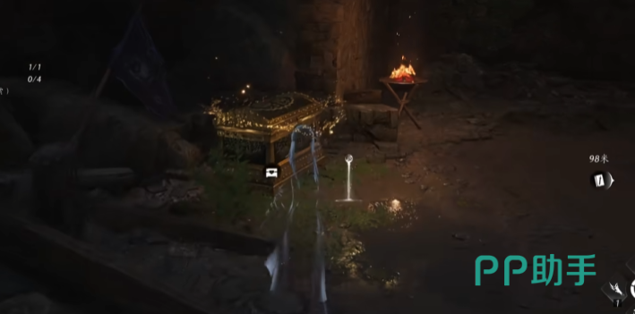 进入后会发现这里其实就是偷师明川药典的地方,暂时先不用下去开打,注意到左侧的窗子了没,直接从栏杆处跳进去,可以看到左边有放着一个宝箱,打开宝箱就可以得到君臣药。有隐身的话全程可以不用接敌,如果没有的话进来后要打2个民壮。