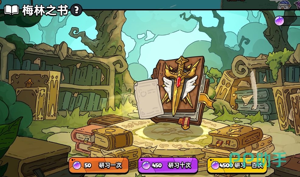 此时小伙伴们可主动与梅林开启对话,作为游戏中的一项任务,只要大家能顺利完成对话后,就能与旁边的梅林之书进行交互,而它的主要作用便是让玩家去通过消耗水晶球的方式来快速提升武器的专精等级,这对于接下来的战斗效果优化而言还是很重要的。