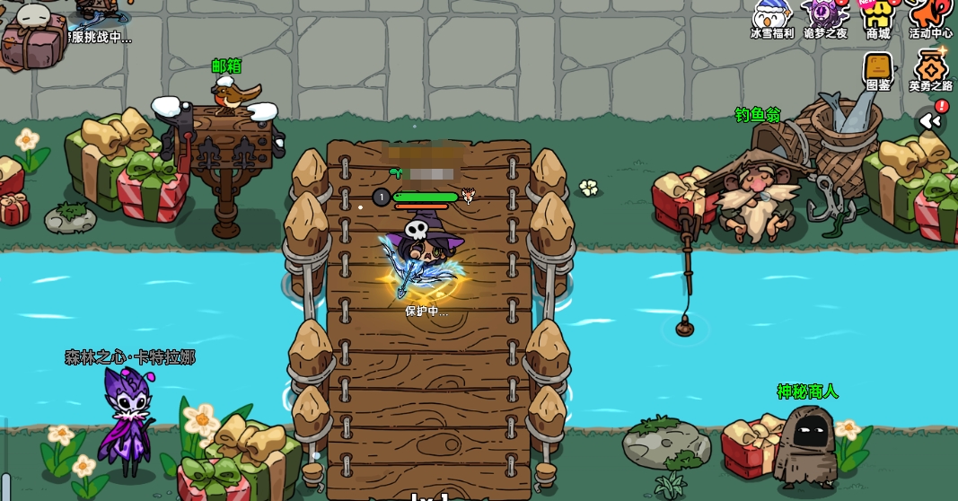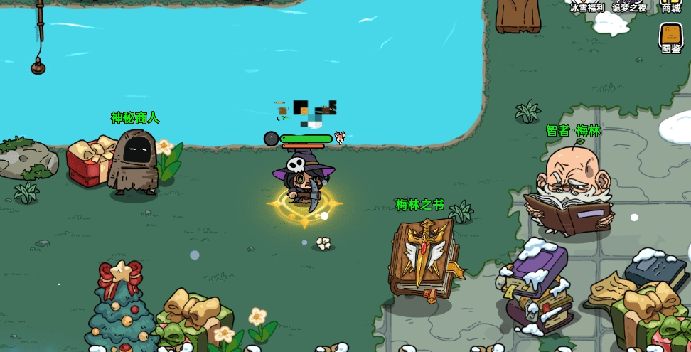 在大家进入游戏中后,只要先找到对应的传送门,然后一直沿着小桥的位置往下走去就可以,不过在此期间一定不能离开安全区,一直往右移动就可以了,当各位看到了神秘商人后,就能顺利见到旁边的白胡子老头,他就是智者梅林了。
