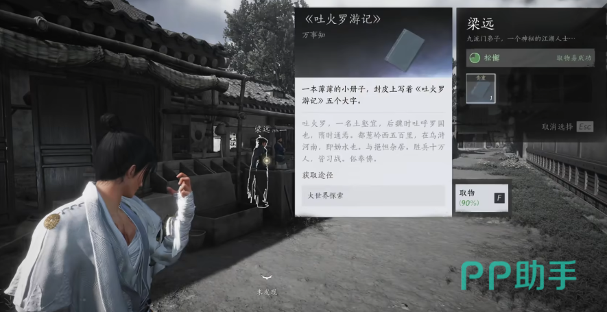 随后就可以看到一个名为“梁远”的NPC了,隔着一段距离的使用“摄星拿月”就可以获得“吐火罗游记”,随后返回之前洛九所在的地方,将这个游记赠与对方,这样一来就完成了这个任务了。