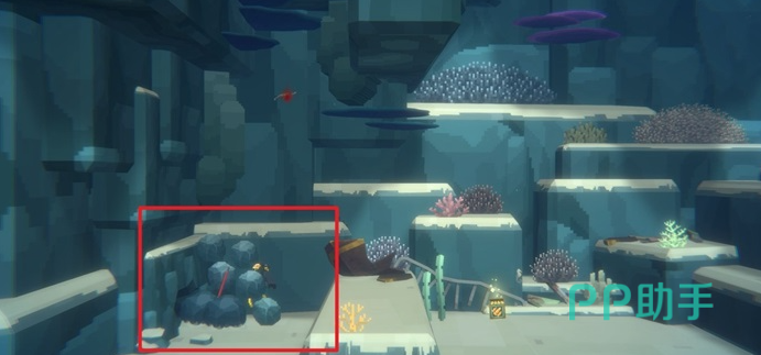 这样哪怕它直接跳起来也不会对我们造成任何伤害,然后我们再进行最后一步继续搬石头,将石头全部放置到右边闪蓝光的地方,这样就可以顺利拿到撬棍,并且完成这个任务继续接下来的剧情。