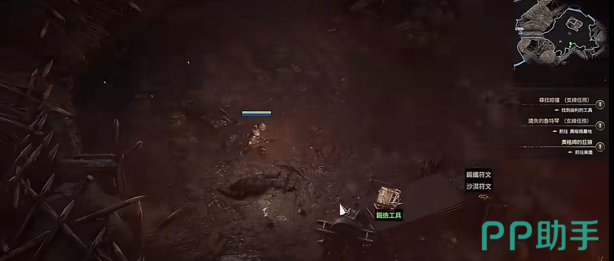 前期在第一章节末尾的时候注意一下寻找熔炉的支线任务,让我们找到伦利的工具,任务提示我们要传送到奥格姆村,到了之后找到这个茅草屋工房,有一个非常窄的道路进来之后就可以直接看到这个锻造工具了,旁边的箱子里面有两个符文。点击一下就会提示我们前往他的位置提交任务,这个后续就可以解锁主城的回收台了。