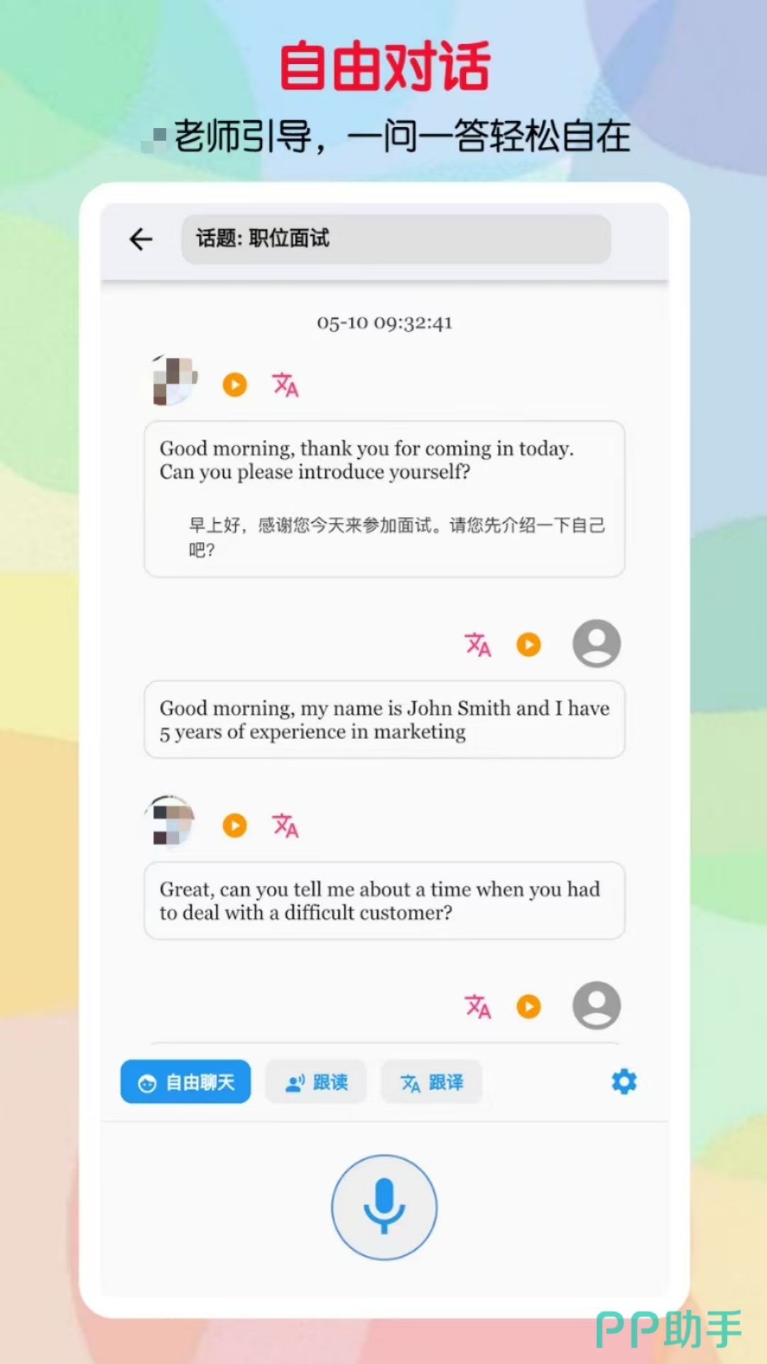 这款软件利用了先进的智能语音识别的技术,这样大家就可能智能的互动练习可以多维度的评分,并精准的检查语法错误,这样可以给大家带来专业的建议,并且设有了跟读的功能,有着各种情景对话,能够生成多种场景的情景图片与对话,还能提供口语技巧和学习建议。而且课程内容特别的丰富,涵盖了多个领域的口语练习场景,可以实时评估发音,并给出详细的反馈和建议。