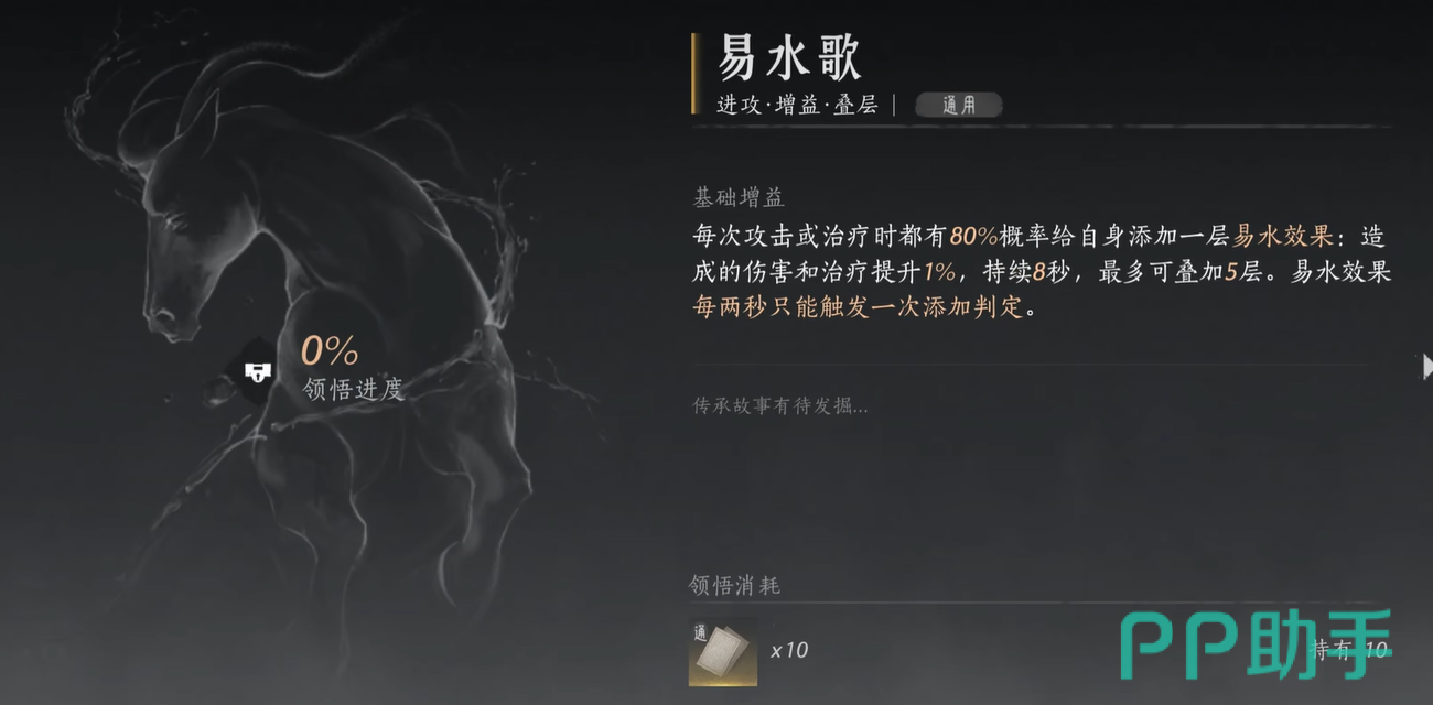 当你收集齐了10张易水歌·页后,就可以将它们合成为完整的心法《易水歌》。具体合成操作并不复杂,界面会给出相关指引。易水歌这部心法无论是用于战斗还是配合流派搭配,都是非常值得入手的。它的属性设计在攻防之间取得了巧妙的平衡,适合多种玩法需求。
