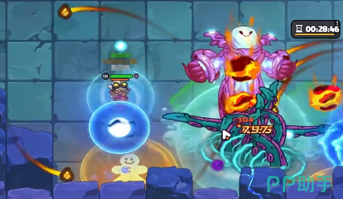在打完电boss后,玩家可直接将镰刀换成书来进图,毕竟在秒出伤机制下换不了准备,并且进图后立刻来到(117,79)这个位置,该位置是吃弹幕子弹最少的地方,很适合站桩打,除了在毒boss能量条满时所释放的高频率弹幕攻击外,其它时间均无需进行太多的移动。