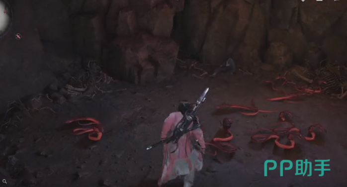 离开刚刚的山头,前往特定的位置,在这里就可以看到有一辆马车站在马车上面,马上就可以获取第2个。在寻找马车位置时,玩家就可以参考游戏的地图标志。按照地图的标志马上就能够找到,在这里不需要使用技能,马上就能获得所需要的蛇骨。