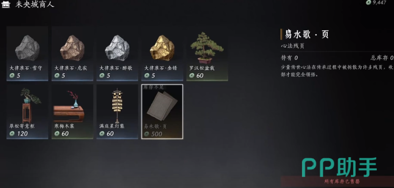 易水歌残页:玩家可以在不羡仙这边直接通过传送的方法找到未央城的商人。再来到商人这边,马上就可以通过购买的方式来获得金色心法。