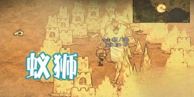 进入沙尘暴区域后,蚁狮的巢穴通常以一个沙坑的形式呈现。它作为NPC登场,最初是温顺且不可攻击的状态,但如果玩家在夏季内忽视与其互动,它会通过发动地陷或落石来表达不满。蚁狮的地陷机制极具威胁性,若玩家靠近巢穴却未能及时与其交互,地面将裂开并制造巨大的伤害圈。因此,与蚁狮的交互行为不仅是为了资源,也是为了生存。