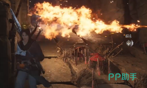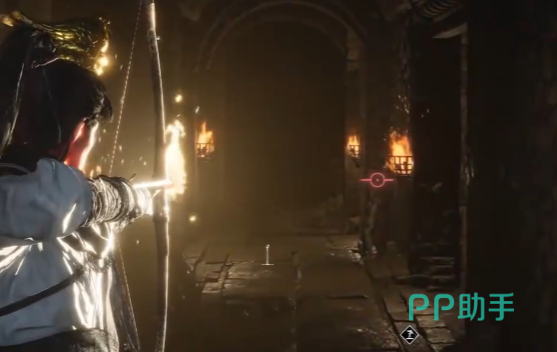然后再去射右边的火把,将这两个火把点亮,之后继续一次做一次右的射下去,等到全部火把都点亮了以后,就可以破解前面的机关陷阱了,就能顺利通过这段道路了,这就是火焰机关的破解方法了。