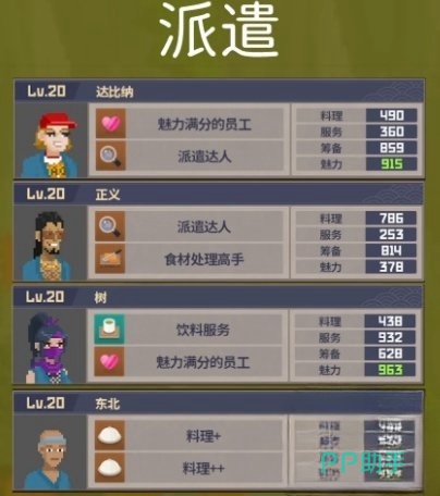派遣系统是游戏中获取资源的重要手段,而选择合适的派遣员工则能显著提升任务收益。达笔纳是派遣任务的优先人选,他的表现稳定且综合能力强,能够在各种任务中为玩家提供可观的回报。而正义与树也可以作为备选派遣人员,他们的能力虽然稍弱,但在特定任务中依然能够发挥作用。