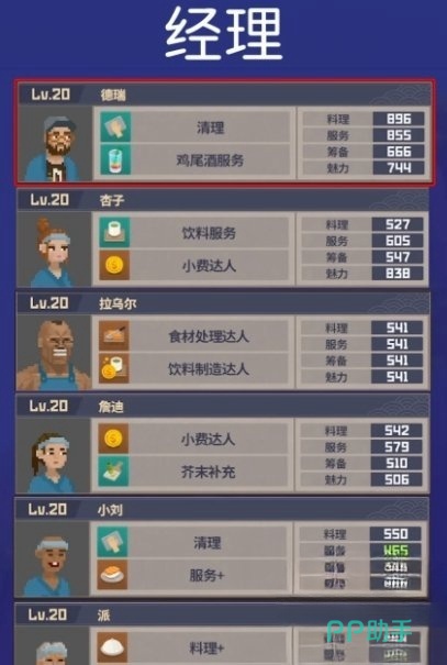 员工系统中,每位角色都有独特的能力和属性,如何让他们各司其职、相辅相成是核心策略之一。作为餐厅的核心管理角色,德瑞无疑是经理的最佳人选。他不仅拥有优秀的垃圾清理能力,还能提供额外的鸡尾酒服务,完全免去玩家手动调制的烦恼。德瑞的综合能力使得他在餐厅的全局管理中表现出色,是一位不可或缺的全能经理。