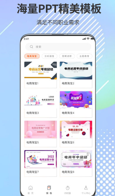 众多刚加入工作领域的新手小白总认为,制作ppt并不是简单容易的,下载这款应用之后,海量模板任意搜索多种风格多种分类,而且会定期更新针对于汇报,企业策划产品宣传等等多种不同的类型都能够在这里轻松解决有简约大气的风格,还有经典商务风格下载之后即可使用,让你的工作变得更加高效。
