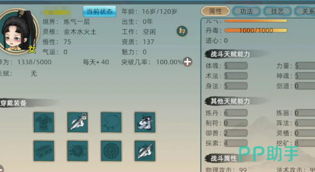 游戏一开始玩家就应该注重于双灵根的选择,这就是一个含有水属性的双灵根。在修炼的过程中就可以给玩家带来辅助性的帮助,如果是新手,建议挑选修仙一区。真仙模式虽然很好玩,可是难度比较大,可能就需要频繁的重生,对新手玩家而言根本就不合适。灵石是游戏中一种重要的货币,主要是用来购买各种不一样的材料和设备。