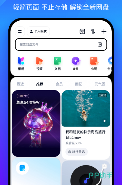 百度网盘能够轻松解决手机内存不足的情况,超大储存空间最重要的是不会收费。目前界面不断更新,推送出全新简洁界面,解锁全新网盘内容。拥有超级好用的云储存产品,为超过7亿用户提供全面的云服务,支持多类型文件分享以及查看。超级好用的数据服务,可储存照片也能够储存视频,几十种不同特色内容等你来挖掘。