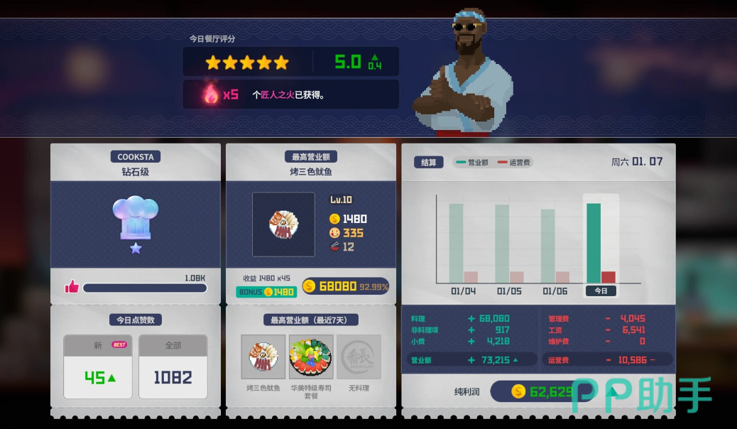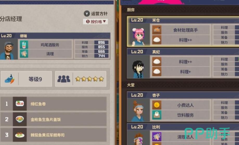 在料理这方面,小编为大家推荐的食材是绯红鱼卷,这道菜不仅可以从游戏的中期卖到后期,并且食材的获取方式也是相当容易。而员工的话比较建议大家把比利给招进来,因为当他拉到15级之后,就会成为店里面的核心员工。