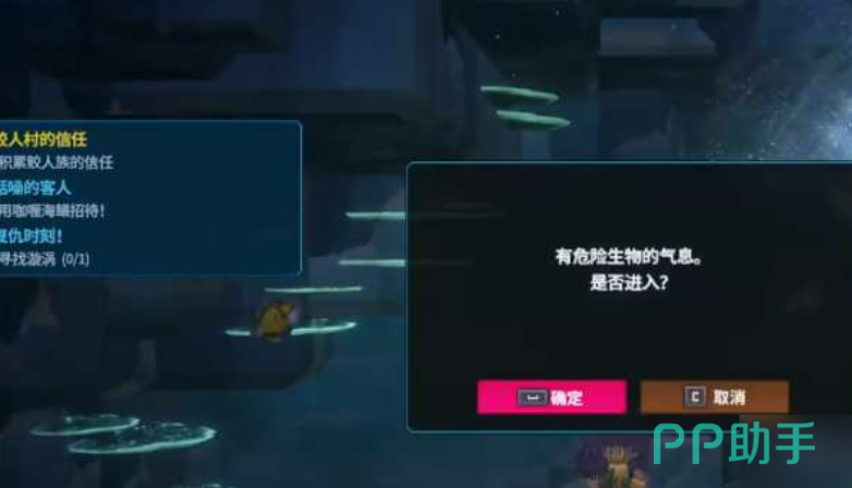这个任务的触发是有特定的时间的,一定是要在暴风雨的夜晚才能够触发,并且这个时间到来是比较随机的,如果小伙伴们当天没有遇到的话,就可能需要再等待一下,直到暴风雨来临。在成功的出发之后,玩家们就需要进行夜潜,只需要在0~50米的浅水区域中即可。在这个区域中仔细地搜寻一番,你会发现出现了一个漩涡。漩涡出现的位置是随机的,并不固定,并且在漩涡的附近会有非常明显的水流声,离的越近声音就会越大。