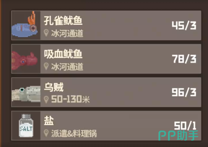 作为提升店铺最终收益的巅峰之作,三色鱿鱼无疑是玩家经营策略的顶点。这款菜品需要3只孔雀鱿鱼、3只吸血鱿鱼和3只乌贼,并加入1袋盐制作而成,解锁条件为员工“小刘”达到15级。这些鱿鱼散布于深海不同区域,捕捉时需要玩家具备较高的操作技巧和升级后的装备支持。三色鱿鱼以其复杂的制作工艺和较高的食材消耗,换来了惊人的售价和顾客好评,是后期冲击顶级店铺排名的核心菜谱。
