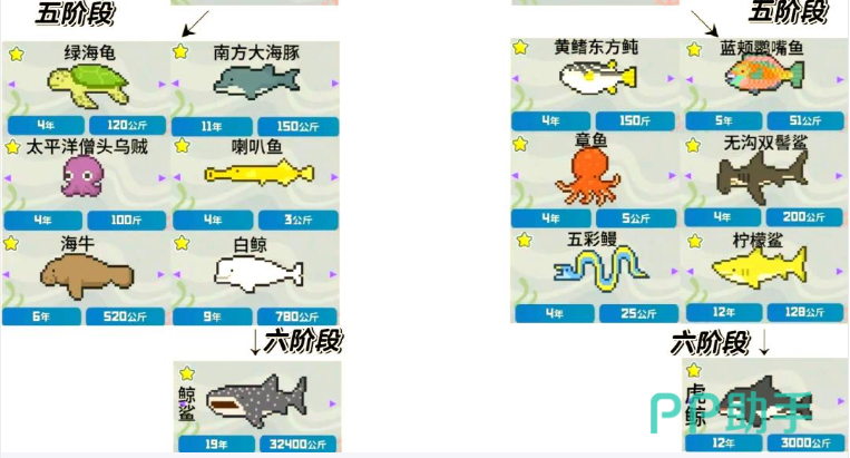 到最后他们会变成两种稀有鱼类,其中白鲸可以变成鲸鲨,柠檬鲨可以变成虎鲸,但是都有一个前提条件,那就是培训值一定要拉满。并且白鲸要在9岁之前拉满,柠檬鲨需要在12或者13岁的时候拉满,不然的话他们就会死亡。