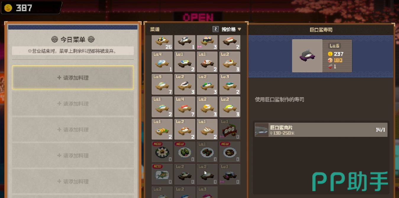当然,如果玩家想要减轻自己完成散寿司任务的压力,也可以直接前往到商店当中,通过挂取招募表的方式,来获得这些食材,但需要消耗玩家大量的金币资源。