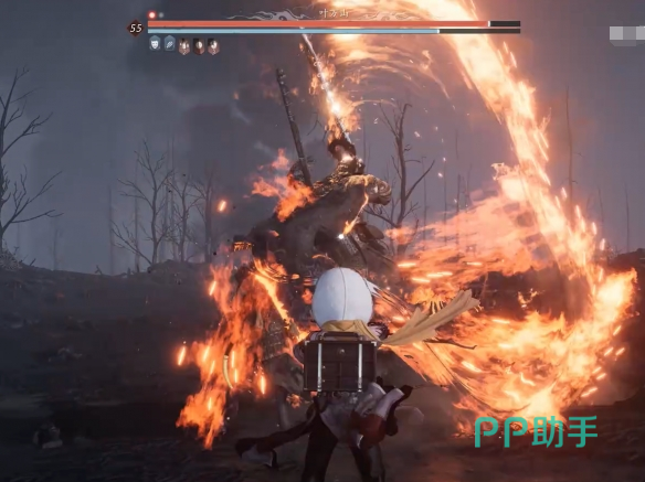 之后在第二个阶段打的时候,叶万山会给自己叠加火属性技能,比如会跳起来用长枪丢玩家,后面还可以衔接技能流星坠火。这里大家需要注意,等叶万山落地之后对他的攻击就可以造成伤害了,所以蓄力不要太早。