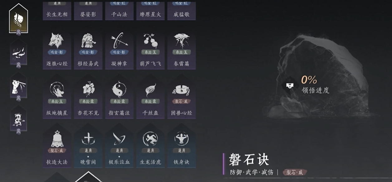 最后,在实际使用磐石诀时,玩家需要注意心法与其他技能的配合,以及在战斗中的实际情况。灵活运用磐石诀的效果,可以显著提升玩家的战斗能力,使玩家在面对各种挑战时更加从容不迫。