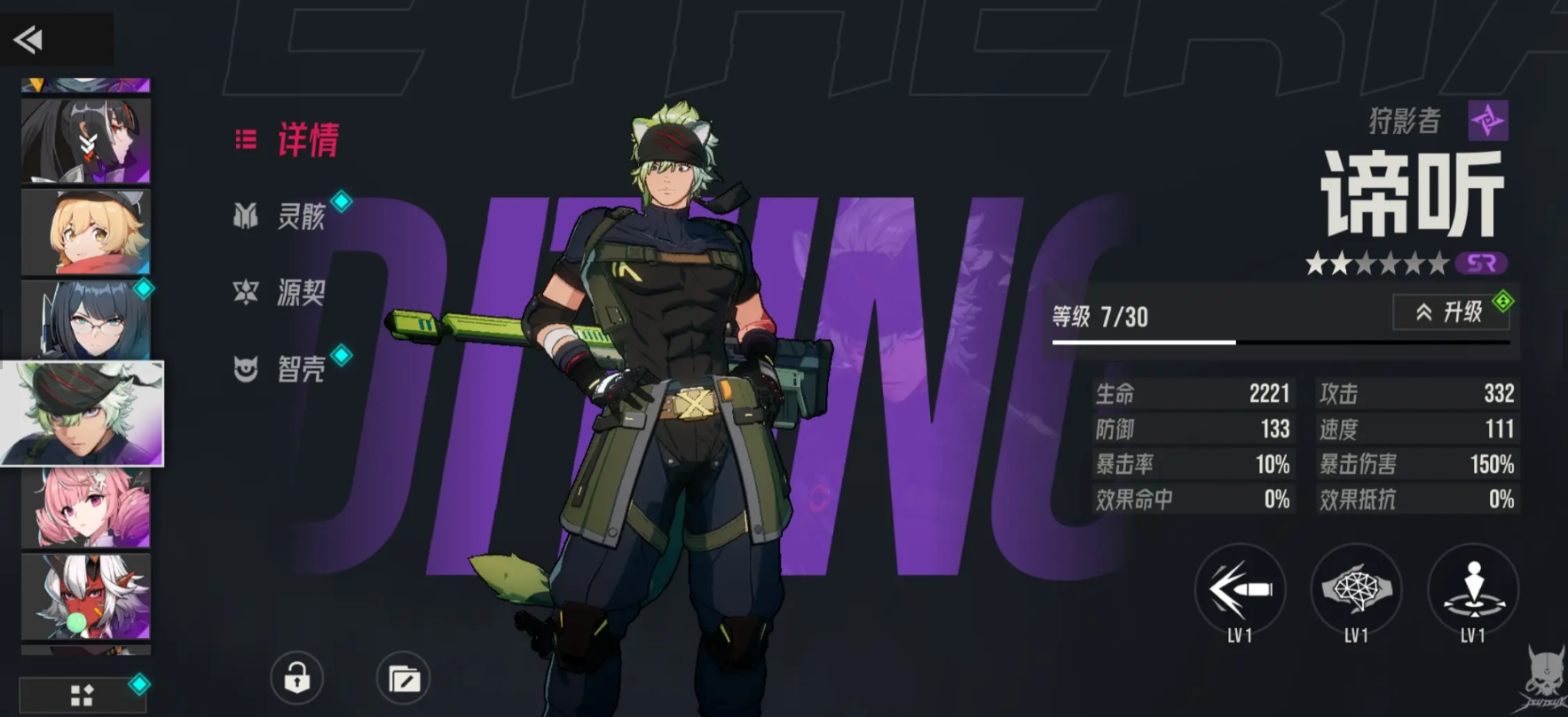 伊瑟谛听厉害吗?谛听是游戏里比较有特点的绿毛角色,还有兽耳,在形象方面相当吸引人眼球,他所属的势力是破序,还拥有个”哨影猎手”的称号,所以即便只是sr角色,大家也想知道他值得不值得去练,强度自然要从技能效果来分析,接下来就具体介绍下他的技能玩法。