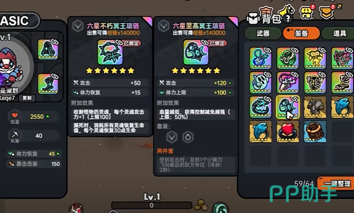 至高冥王项链:这条项链提供了大量的攻击力加成和体力上限提升。佩戴后,玩家的攻击力将得到显著提升,同时体力上限的增加也增强了玩家的持续作战能力。至高冥王项链还拥有在受到攻击时发射小镰刀造成物理伤害的技能,为玩家提供了一定的反击能力。