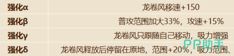 在改造时可以选择多个路线,例如选择强化α,可以有效让龙卷风的移动速度增加150,在清理分散的怪物时还是非常有用的,能够很快进入到敌人的周围,然后展开输出。