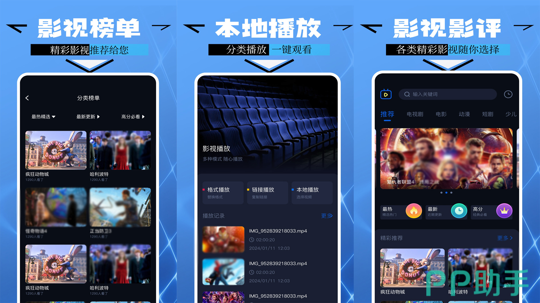 PP视频是一款功能强大的视频播放器,提供丰富的影视资源,包括电影、电视剧、综艺、动漫、体育直播、游戏竞技等内容。用户可以通过PP视频观看高清蓝光画质的影视内容,并支持多种格式的本地播放和在线观看。