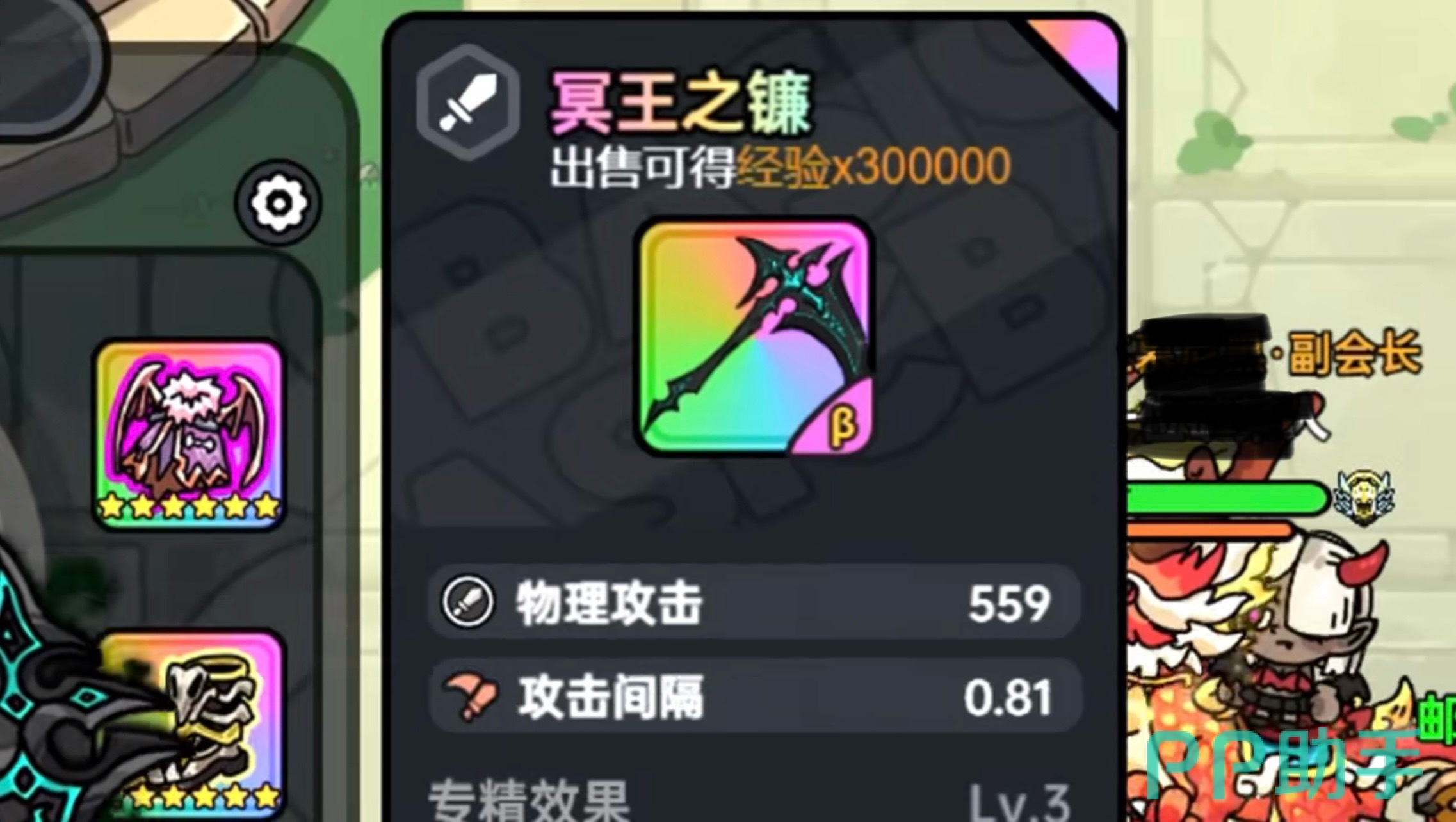 然后推荐的就是物理属性的武器,这里优先推荐冥王之镰刀,因为这把武器提供了高额的攻击力。然后又有极快地攻击速度,可以一次性挥砍多次。技能的话可以在自身作为生成一道冥王之影,会进一步的增加你的攻击力。如果改造成功的话,每次暴击都可以延长高技能1秒钟,让你可以一直维持冥王状态。