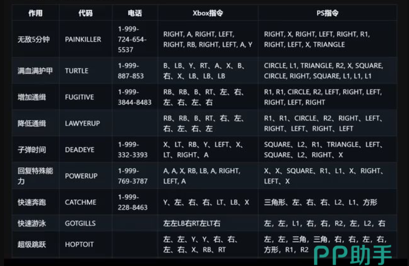 想要想体验一次成为超人的感受,用代码PAINKILLER或者是拨打1-999-724-654-5537都是能够拿到5分钟的无敌效果的,要是想要加满血以及拥有护甲,用TURTLE或者是打1-999-887-853也行。