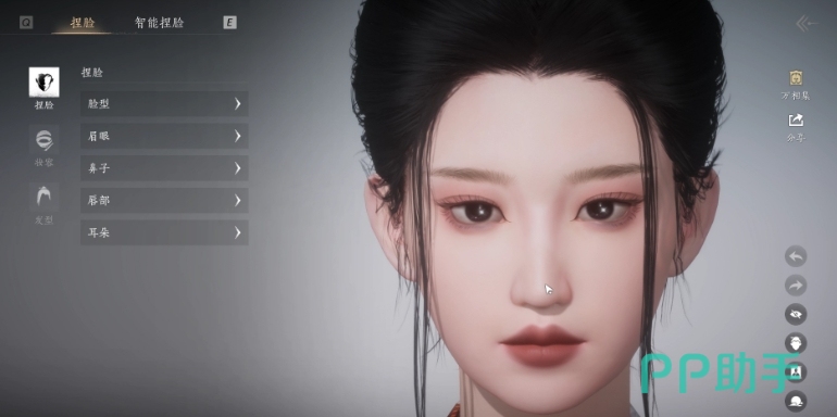 在捏脸界面,首先是对角色的基础面部特征进行调整,可以选择不同类型的脸型作为起点,然后根据个人喜好调整脸型的宽度、下巴的弧度等。