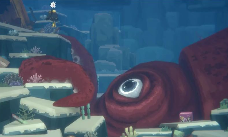 如果玩家们在下潜的过程中一路上看到了箱子和逃生舱的话,那么说明你选择的路线是正确的,只需要继续往下潜行即可。在105米左右的位置,可以看到有一艘废弃的黄色船只,在这个船只的底下,小伙伴们就可以看到达夫的粉色快递了。不过在这个附近有可能会出现一个boss,也就是章鱼,他有一定的概率会把快递拿走,但任务的结局不会受到影响,同样也是能够完成的。