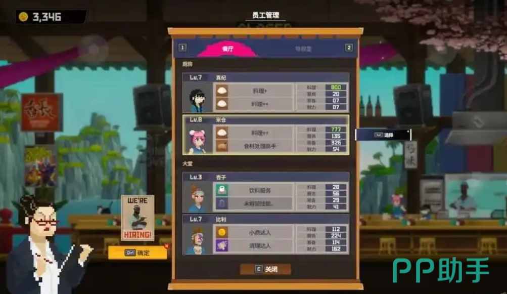 同时为了能够维持店铺的运转,尽快的满足客人的需求,玩家们还需要多聘请一些员工,然后把他们安排到合适的岗位上,比如说有的员工特别会清理盘子,那么大家就可以安排他们去大堂,这样的话一旦客人吃完离开,他们就马上能把桌子收拾干净,然后来迎接下一位客人。