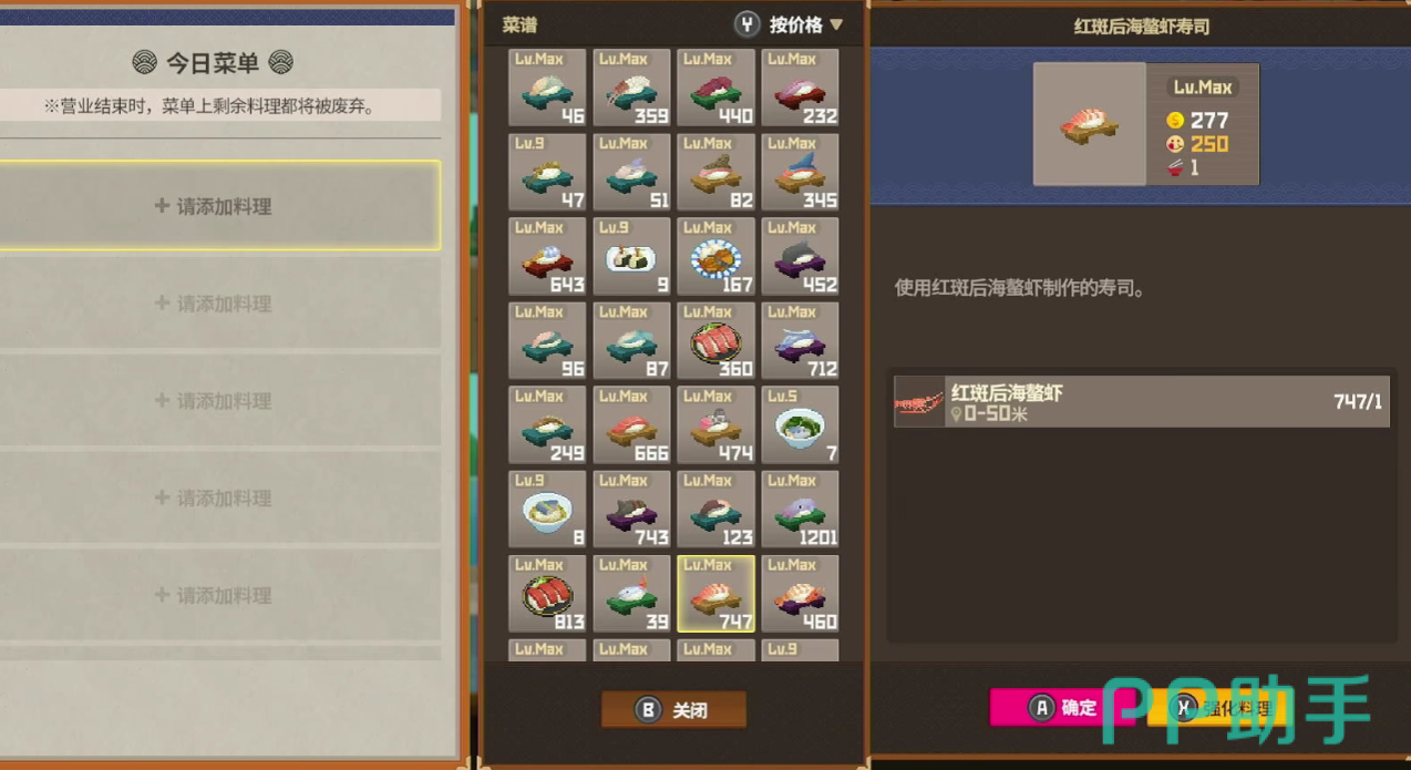 上面的这些内容就是本子小编给大家带来的潜水员戴夫菜单推荐的全部内容了,游戏当中还有一类菜肴是需要玩家注意的,那就是固定节日的菜肴,例如进入到了万圣节,玩家就必须制作和万圣节主题有关的食材,希望看完本次内容的小伙伴们,可以进入到游戏当中体验一下哟~