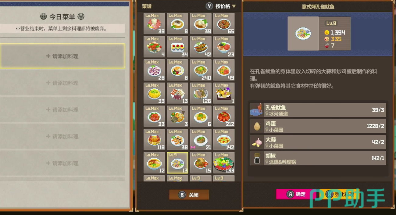 除了以上这三个菜品以外,玩家在前期还必须升级自己的咖喱制作水平,由于前期可供玩家捕猎的鱼类是比较少的,大部分的食材都是水母或章鱼,而咖喱是可以完美搭配所有菜系的,如果玩家某个季节的收成不足,也可以使用咖喱来扛过晚上的经营时间。