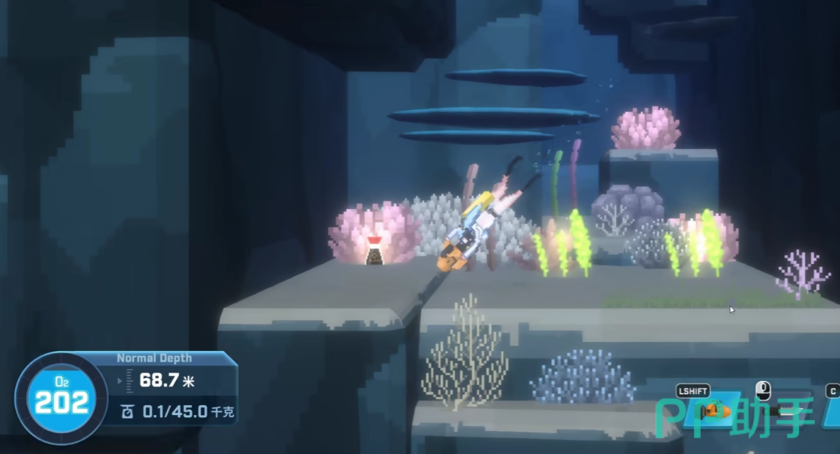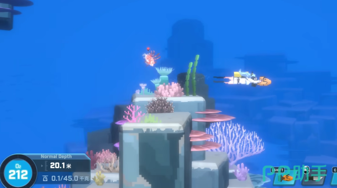 在达成了上述条件厚度号玩家直接前往珊瑚海岸,下潜五十米左右,都能够看到鲳鲹了,鲳鲹群一般生活在没有阳光的区域内,玩家在寻找时,直接往珊瑚礁的阴暗面行动即可,鲳鲹属于攻击性很高的生物,并且移动速度很快,一旦鲳鲹群发现了玩家,就会立刻对玩家展开群殴,为了避免这一个情况,在战斗设备上,玩家可以使用附带有麻醉效果的枪械。