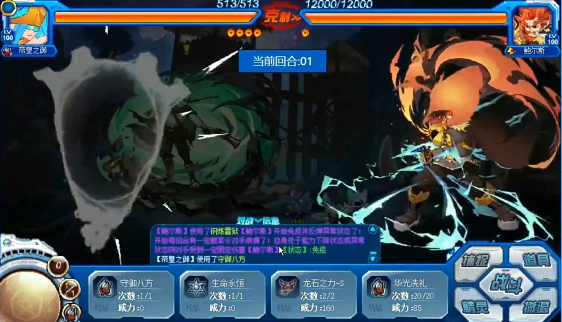 打第4个boss的时候是采用的是帝皇之御,闪光猛虎王为主力,德罗西尼可以作为替补。首发直接帝皇之御守,御八方自暴,接下来攻击附加必先必爆效果,最后一个打库特朗的阵容就选择混沌魔君索伦森作为主力,也可以在很短的回合内直接结束战斗。
