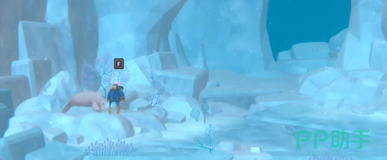 冰空洞左下角是海牛宝宝的藏身之地,靠近左下角时,玩家会看到一只迷路的小海牛蜷缩在冰壁旁,它的表现显得焦虑且需要安抚。任务的关键环节是通过互动安抚海牛宝宝,当玩家靠近后,可以使用手势动作与它进行互动。安抚的过程中需要耐心,直到小海牛的情绪变得稳定并对玩家表现出信任。